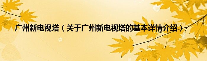 本文关于广州新电视塔的基本详情介绍就讲解完毕,希望对大家有所帮助。