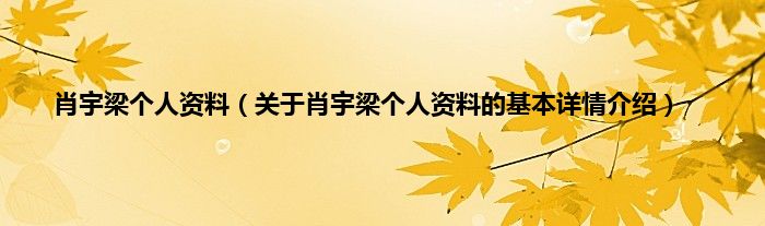 本文关于肖宇梁个人资料的基本详情介绍就讲解完毕,希望对大家有所帮助。