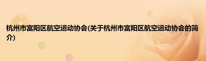 本文关于杭州市富阳区航空运动协会的简介就讲解完毕,希望对大家有所帮助。