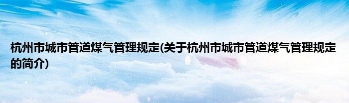 本文关于杭州市城市管道煤气管理规定的简介就讲解完毕,希望对大家有所帮助。