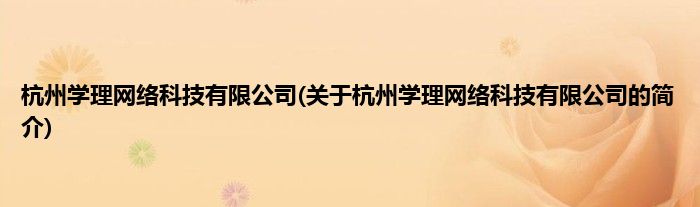 大家好,杭州学理网络科技有限公司,关于杭州学理网络科技有限公司的简介很多人还不知道,现在让我们一起来看看吧!