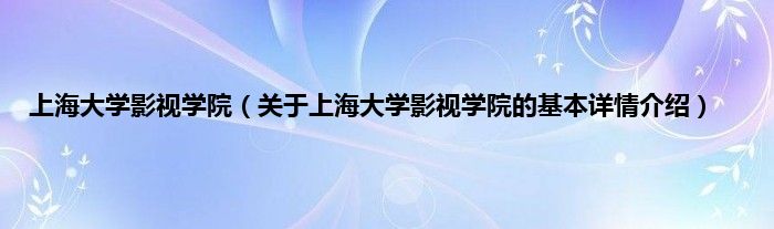 本文关于上海大学影视学院的基本详情介绍就讲解完毕,希望对大家有所帮助。