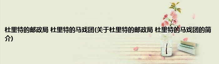 大家好,杜里特的邮政局。杜里特的马戏团,关于杜里特的邮政局。杜里特的马戏团的简介很多人还不知道,现在让我们一起来看看吧!