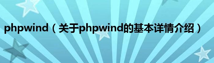 本文关于phpwind的基本详情介绍就讲解完毕,希望对大家有所帮助。