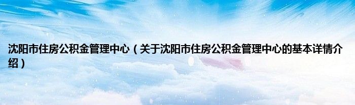 沈阳市住房公积金管理中心(关于沈阳市住房公积金管理中心的基本详情介绍)