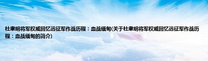 本文关于杜聿明将军权威回忆远征军作战历程:血战缅甸的简介就讲解完毕,希望对大家有所帮助。