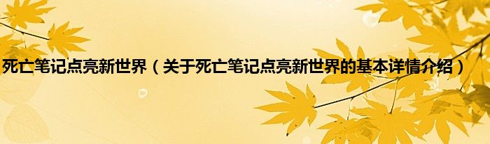 本文关于死亡笔记点亮新世界的基本详情介绍就讲解完毕,希望对大家有所帮助。