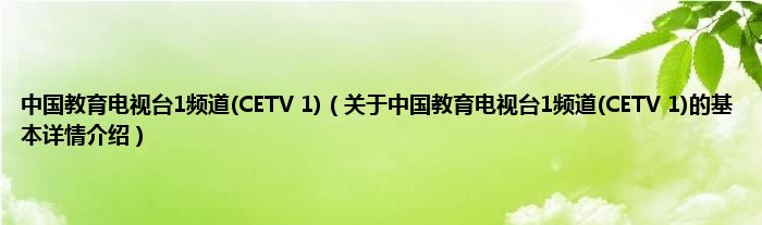 本文关于中国教育电视台1频道(CETV 1)的基本详情介绍就讲解完毕,希望对大家有所帮助。