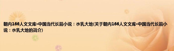 本文关于朝内166人文文库·中国当代长篇小说:水乳大地的简介就讲解完毕,希望对大家有所帮助。