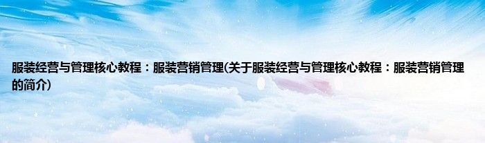 本文关于服装经营与管理核心教程:服装营销管理的简介就讲解完毕,希望对大家有所帮助。