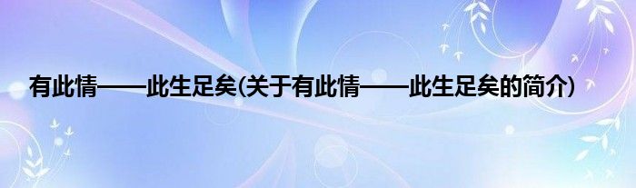 本文关于有此情——此生足矣的简介就讲解完毕,希望对大家有所帮助。
