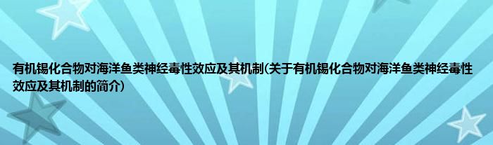 本文关于有机锡化合物对海洋鱼类神经毒性效应及其机制的简介就讲解完毕,希望对大家有所帮助。