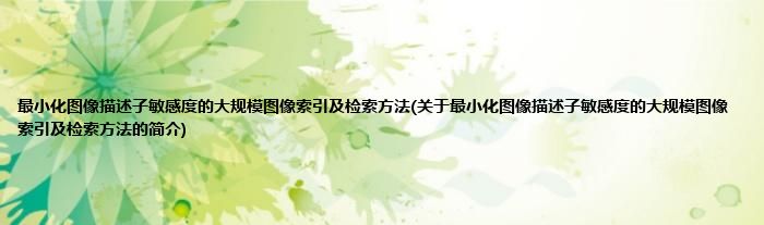 本文关于最小化图像描述子敏感度的大规模图像索引及检索方法的简介就讲解完毕,希望对大家有所帮助。