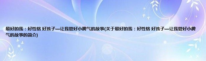 本文关于最好的我:好性格,好孩子—让我管好小脾气的故事的简介就讲解完毕,希望对大家有所帮助。