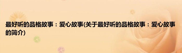 本文关于最好听的品格故事:爱心故事的简介就讲解完毕,希望对大家有所帮助。
