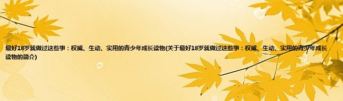 本文关于最好18岁就做过这些事:权威、生动、实用的青少年成长读物的简介就讲解完毕,希望对大家有所帮助。