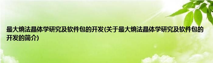 大家好,最大熵法晶体学研究及软件包的开发,关于最大熵法晶体学研究及软件包的开发的简介很多人还不知道,现在让我们一起来看看吧!