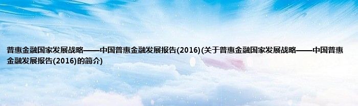 本文关于普惠金融国家发展战略——中国普惠金融发展报告(2016)的简介就讲解完毕,希望对大家有所帮助。