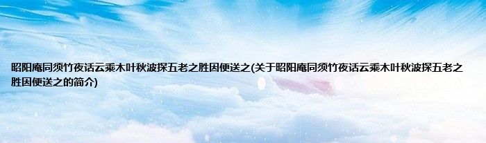 本文关于昭阳庵同须竹夜话云乘木叶秋波探五老之胜因便送之的简介就讲解完毕,希望对大家有所帮助。