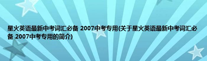 本文关于星火英语最新中考词汇必备 2007中考专用的简介就讲解完毕,希望对大家有所帮助。