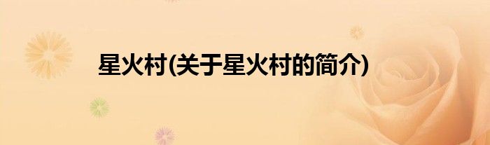 本文关于星火村的简介就讲解完毕,希望对大家有所帮助。