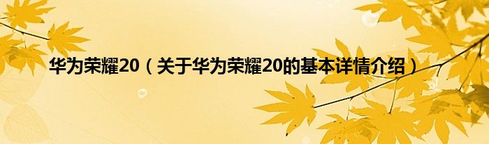 本文关于华为荣耀20的基本详情介绍就讲解完毕,希望对大家有所帮助。