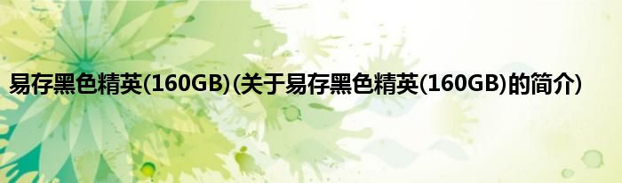 大家好,易存黑色精英,160GB,关于易存黑色精英,160GB的简介很多人还不知道,现在让我们一起来看看吧!