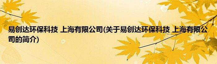 本文关于易创达环保科技 上海有限公司的简介就讲解完毕,希望对大家有所帮助。