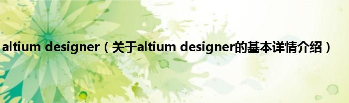 altiumdesigner(关于altiumdesigner的基本详情介绍)