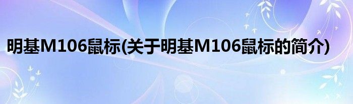 大家好,明基M106鼠标,关于明基M106鼠标的简介很多人还不知道,现在让我们一起来看看吧!