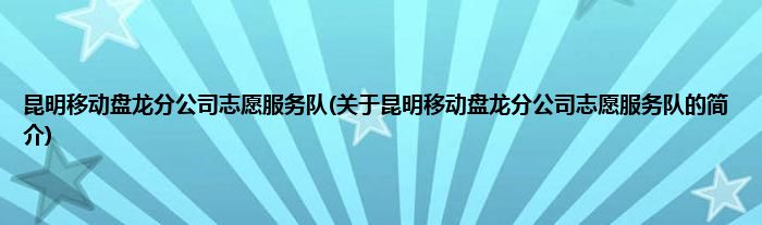 1、 昆明移动盘龙分公司志愿服务队是由中国移动云南公司昆明分公司志愿服务联合会领导下的志愿团体。