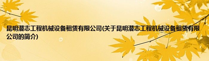 本文关于昆明潜志工程机械设备租赁有限公司的简介就讲解完毕,希望对大家有所帮助。