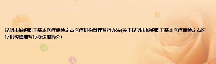 1、 为了加强和规范昆明市城镇职工基本医疗保险定点医疗机构管理。