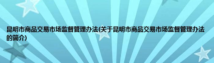昆明市商品交易市场监督管理办法(关于昆明市商品交易市场监督管理办法的简介)