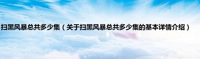 本文关于扫黑风暴总共多少集的基本详情介绍就讲解完毕,希望对大家有所帮助。