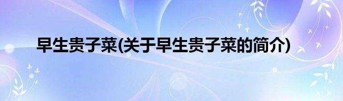 本文关于早生贵子菜的简介就讲解完毕,希望对大家有所帮助。