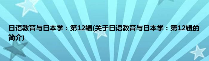 本文关于日语教育与日本学:第12辑的简介就讲解完毕,希望对大家有所帮助。
