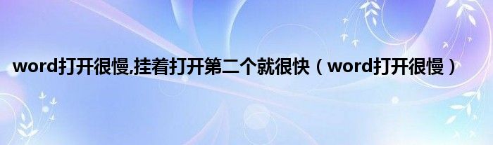 大家好,精选小编来为大家解答以上问题。word打开很慢,挂着打开第二个就很快,word打开很慢很多人还不知道,现在让我们一起来看看吧!