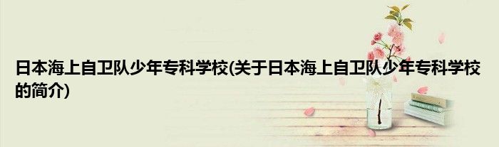 本文关于日本海上自卫队少年专科学校的简介就讲解完毕,希望对大家有所帮助。
