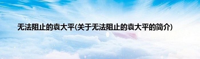 大家好,无法阻止的袁大平,关于无法阻止的袁大平的简介很多人还不知道,现在让我们一起来看看吧!