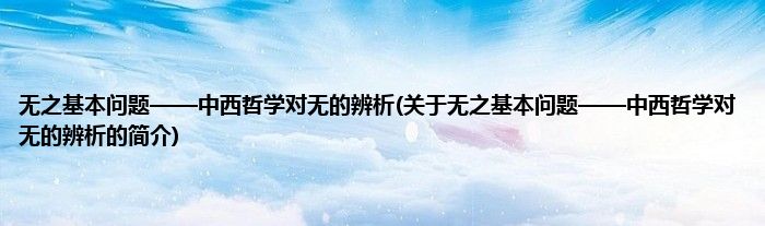 本文关于无之基本问题——中西哲学对无的辨析的简介就讲解完毕,希望对大家有所帮助。