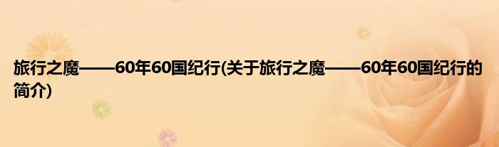 大家好,旅行之魔——60年60国纪行,关于旅行之魔——60年60国纪行的简介很多人还不知道,现在让我们一起来看看吧!