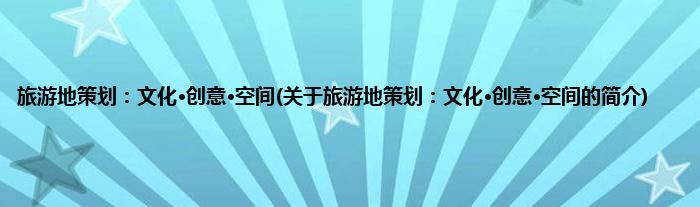 大家好,旅游地策划:文化·创意·空间,关于旅游地策划:文化·创意·空间的简介很多人还不知道,现在让我们一起来看看吧!