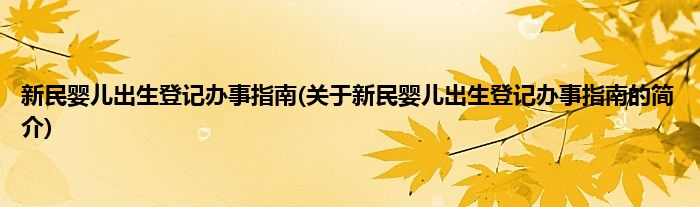 本文关于新民婴儿出生登记办事指南的简介就讲解完毕,希望对大家有所帮助。