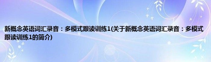本文关于新概念英语词汇录音:多模式跟读训练1的简介就讲解完毕,希望对大家有所帮助。