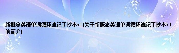 本文关于新概念英语单词循环速记手抄本·1的简介就讲解完毕,希望对大家有所帮助。