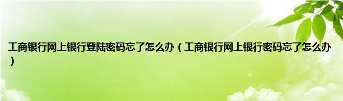 大家好,精选小编来为大家解答以上问题。工商银行网上银行登陆密码忘了怎么办,工商银行网上银行密码忘了怎么办很多人还不知道,现在让我们一起来看看吧!