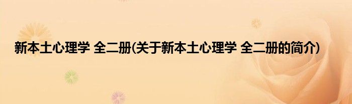 1、 《新本土心理学(全二册)》是中国社会科学出版社出版的图书。