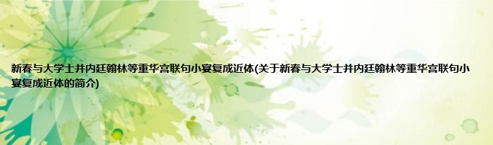 新春与大学士并内廷翰林等重华宫联句小宴复成近体(关于新春与大学士并内廷翰林等重华宫联句小宴复成近体的简介)