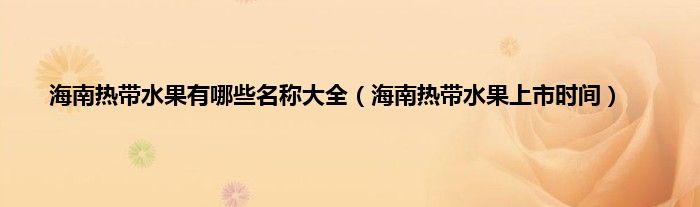 大家好,小科来为大家解答以上问题。海南热带水果有哪些名称大全,海南热带水果上市时间很多人还不知道,现在让我们一起来看看吧!